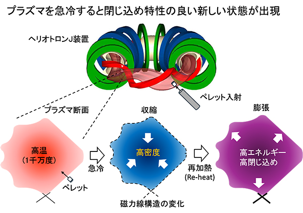 急速な密度上昇によってプラズマを閉じ込め特性の高い状態に変化させる